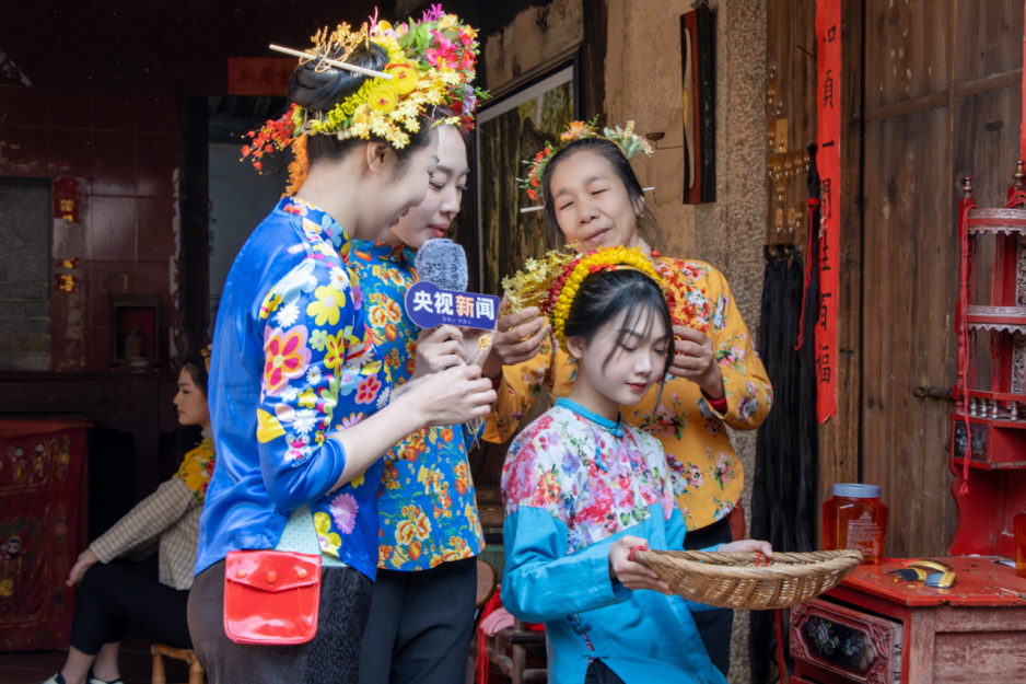 2月24日—26日,中央广播电视总台摄制组一行4人莅临蟳埔社区开展直播连线和视频拍摄,我校4名学生配合该主题拍摄活动。活动现场,我校学子在蟳埔村,身着蟳埔女服饰、头顶簪花围,在古香古色的蚝壳厝中参与央视总台拍摄。
