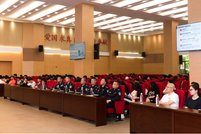 胡警官围绕电信网络诈骗定义、常见诈骗类型、防范要点及补救措施等核心内容展开讲解。他结合近期高校多发的“杀猪盘”“冒充公检法”“刷单返利”“裸聊诈骗”等典型案例,通过情景再现、心理分析等方式,深度解析诈骗分子的话术陷阱和心理操控手法。他提醒师生务必保持高度警惕,切勿因贪图小利而落入诈骗陷阱,并针对学生群体量身定制了防诈攻略,为师生带来一场“干货满满”的知识讲座。