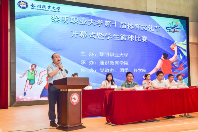 5月21日,黎明职业大学第十届体育文化节开幕式暨学生篮球比赛在胡应湘体育馆举行。校党委副书记、校长王锋,校党委委员、副校长李云龙出席活动。