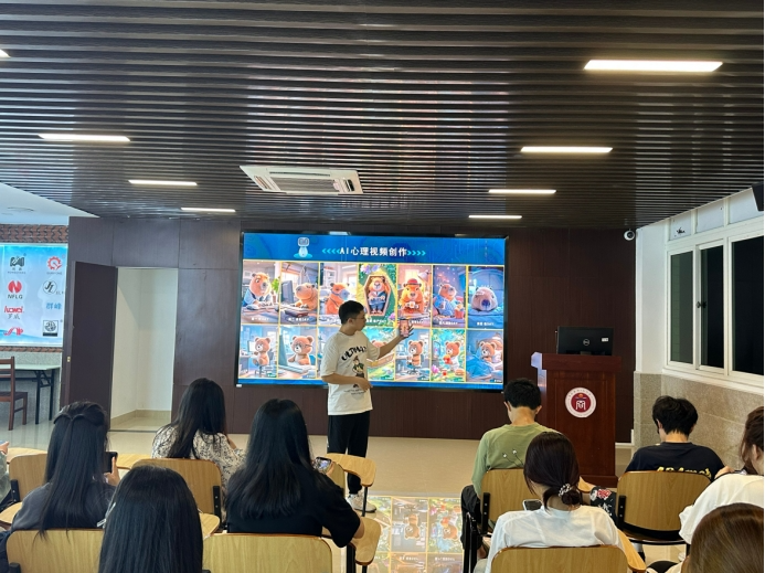 在“一站式”学生社区框架下,商学院积极探索“数智+心育”的融合路径。通过开设“数智赋能心理健康”专题课堂,将数智手段融入心理健康作品创作,指导学生运用AI工具制作心理健康主题短视频与绘画作品。此外,学院还推出了心理信息站的首个数智吉祥物“鹿鹿”,依托其形象制作心理健康科普短视频,以趣味动画形式解析心理调适技巧,用“创意表达、科技支撑、情感共鸣”的心理育人闭环,升级“一站式”学生社区心理服务的科技人文底色。
