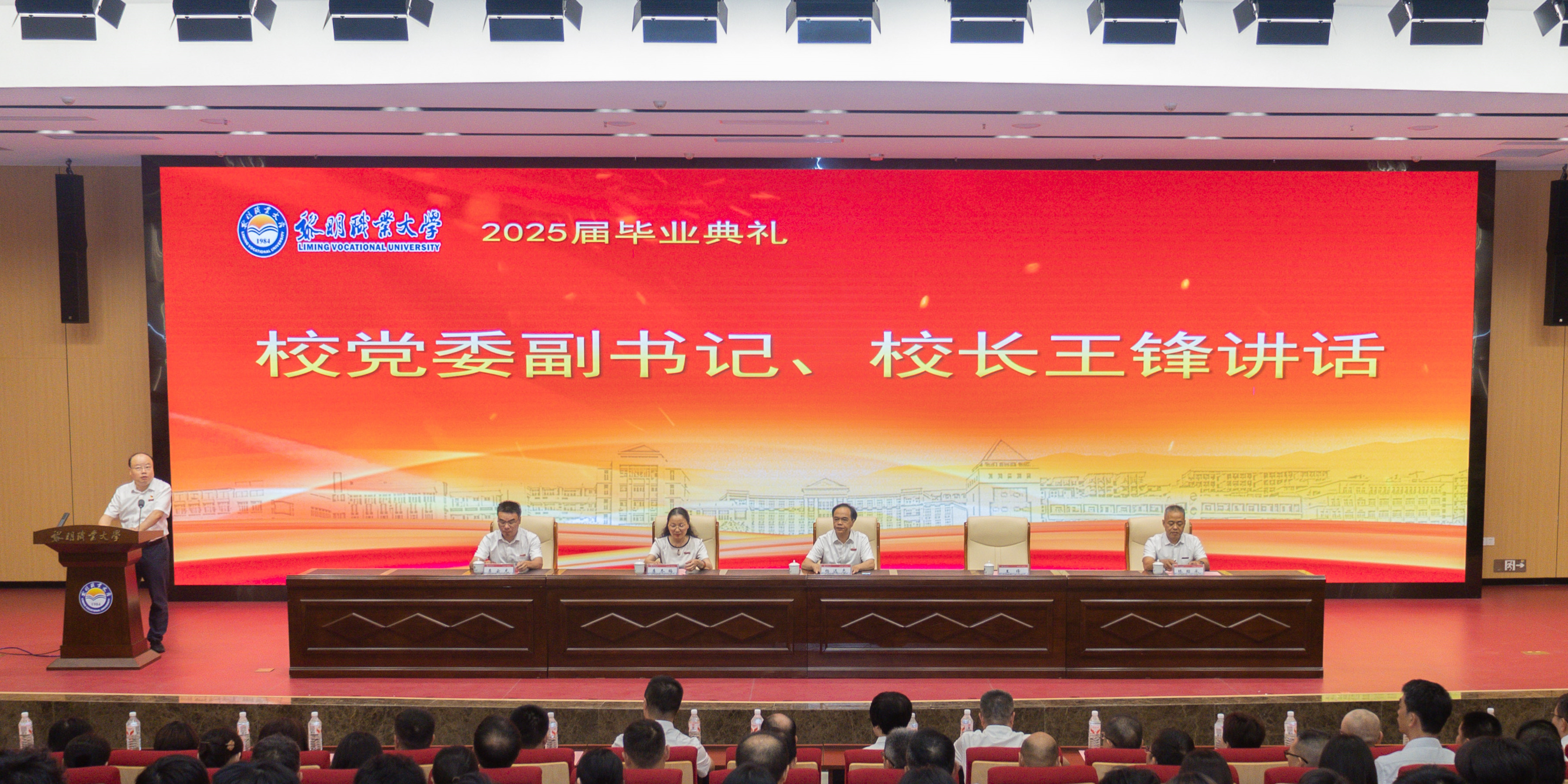 校党委副书记、校长王锋代表学校向5382名2025届毕业生表示热烈祝贺与诚挚祝福,向悉心培育的教师们致以崇高的敬意和衷心的感谢。他以“新的征程、沐光而行”为题在毕业典礼上致辞,回顾了同学们在学校的成长历程,为同学们的精彩表现喝彩,向即将踏入社会的毕业生们提出了三点希冀。一是把握时代脉搏,做一名孜孜不倦的终身学习者,在各自工作岗位上,充分利用好碎片化时间,不断给自己充电,获取新工作技能,提升逻辑思维能力,增长本领,与时代同行;二是融入国家需求,做一名追求职业价值的践行者,完成学生到职业人的身份转变,不断突破自我,实现社会价值与个人价值;三是传承民族血脉,做一名身心健康的工作者,传承家庭观念,拼搏事业的同时经营好小家庭,在困难时保持积极向上的姿态。