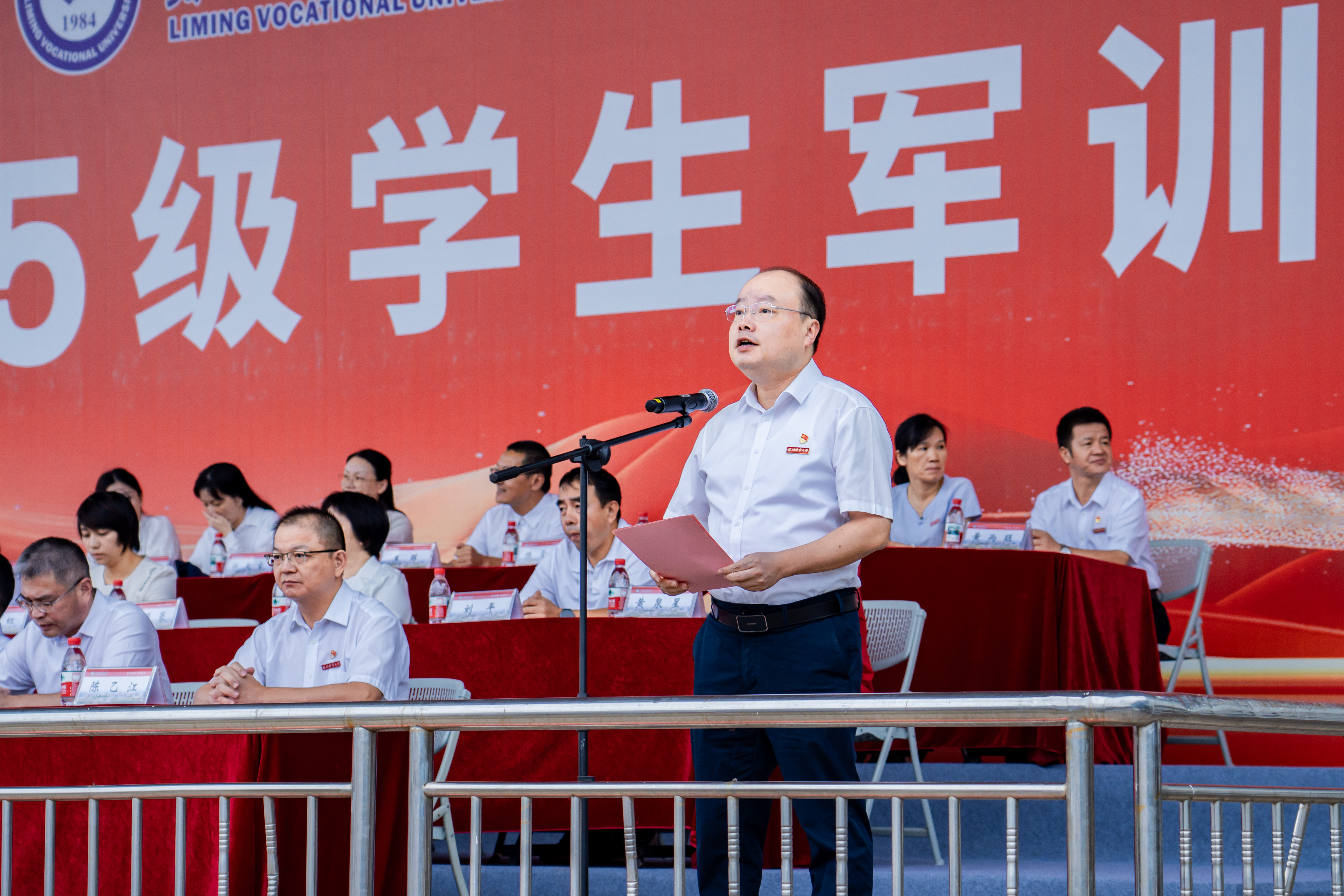 校党委书记杨远志宣布2025级学生军训正式开始。