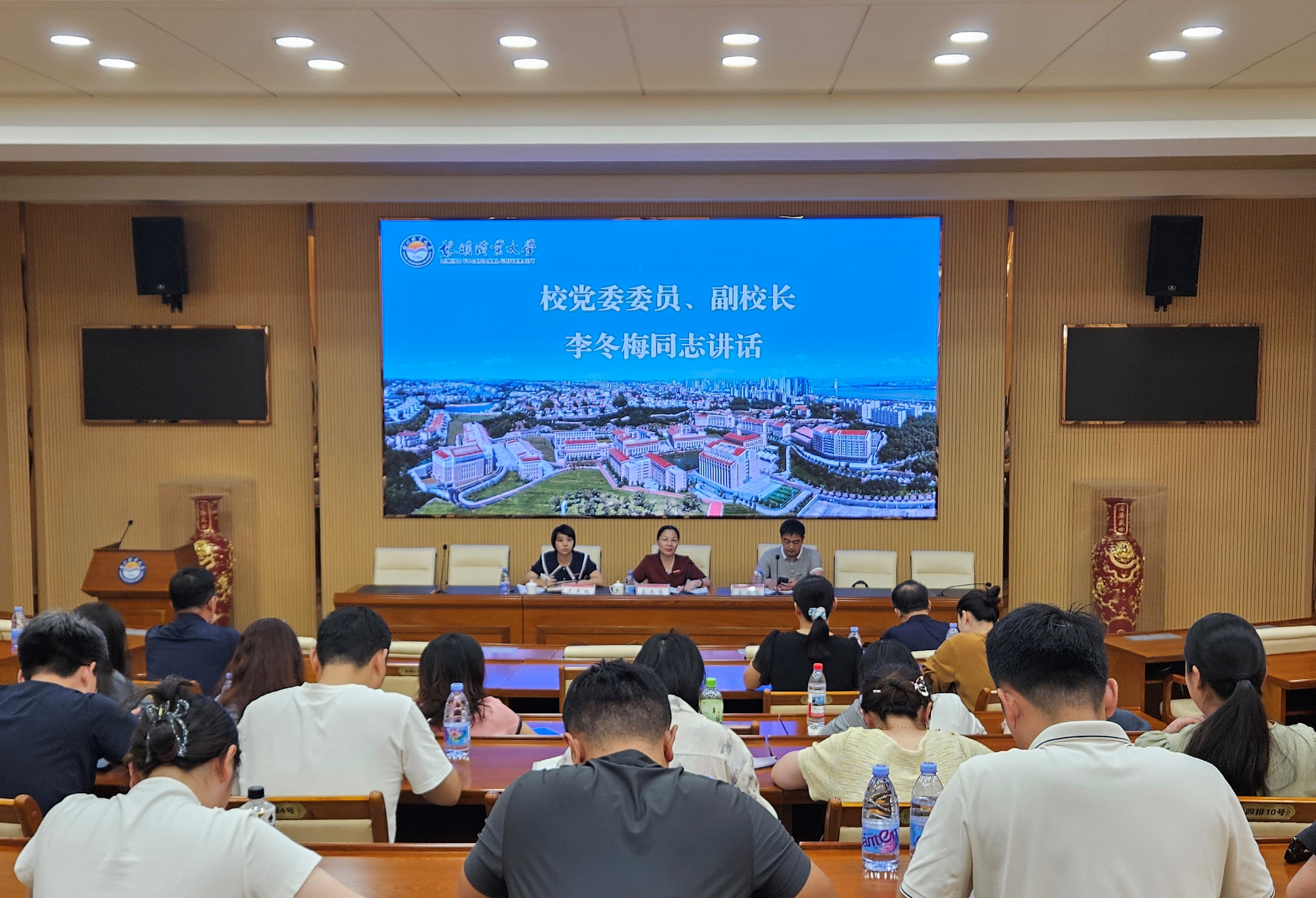 校党委委员、副校长李冬梅出席会议并讲话。她强调,要抓实新生军训保障,细化后勤服务举措,确保新生军训安全有序开展;要强化学生教育管理,持续跟踪新生入学适应情况,引导养成良好学习习惯;要精准掌握学生身心健康状态,深化心理健康与安全教育,提升学生身心素养及安全防范意识;要精心筹备迎新晚会等,力求打造特色鲜明、水平过硬的文化活动;要规范团学组织建设,严格推进团员发展工作,为党组织输送优秀后备力量;要做优毕业生就业服务,建立困难群体帮扶台账,要主动对接行业协会等资源,助力毕业生安全实习、高质量就业;要严把师德师风建设关,落实立德树人根本任务,确保相关工作高质量完成;要筑牢校园意识形态防线,压实全员责任,定期自查并更新网站、新媒体平台内容,共同维护校园意识形态安全。