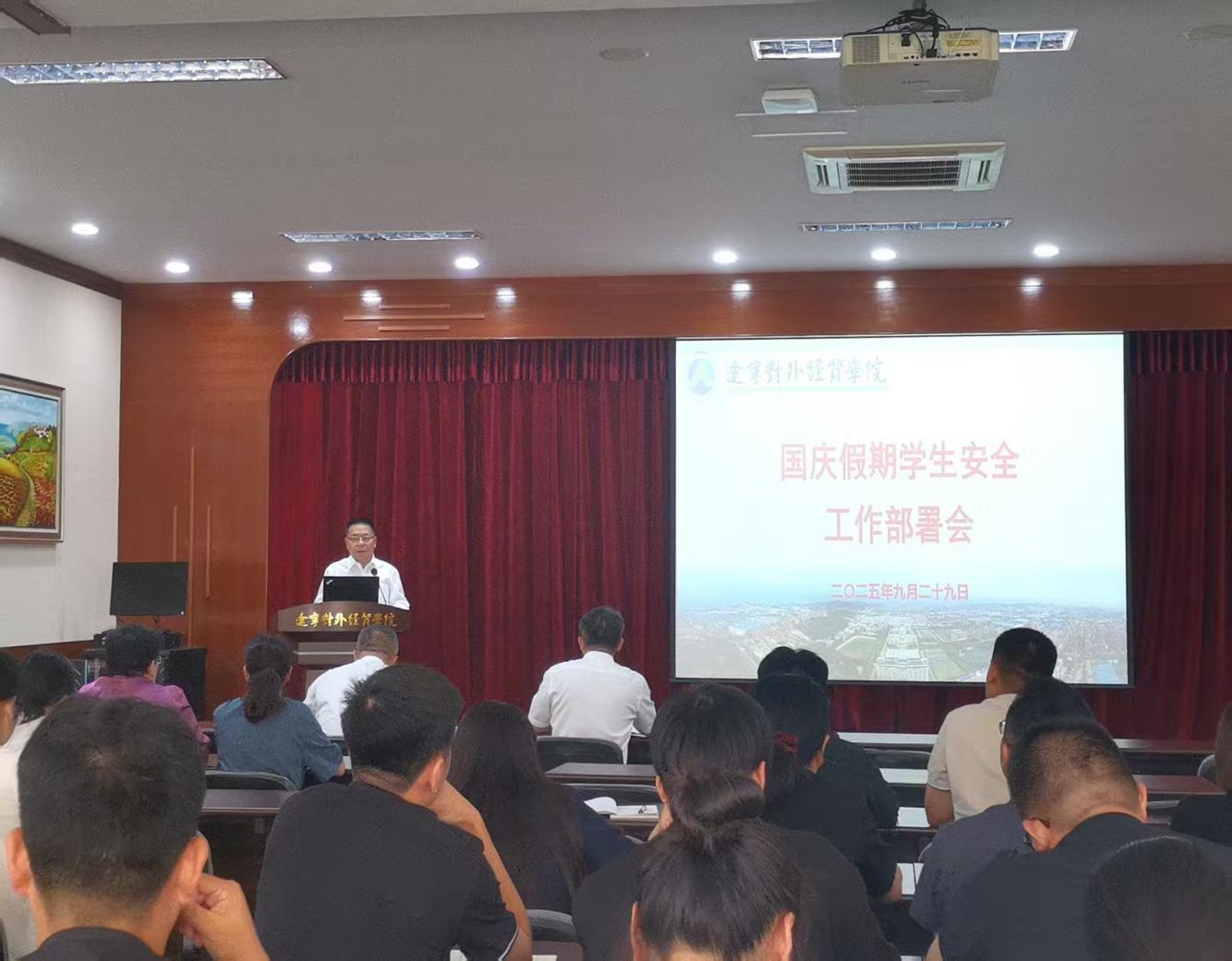 会上,学校党委副书记李健总结了秋季学期开学以来的学生工作,指出了亮点成效和不足之处,并就国庆期间学生的安全教育和管理工作进行全面部署。他要求,一要提高政治站位,强化责任共识。要切实增强安全工作的责任感与紧迫感,将国庆假期前后学生教育管理工作与校园安全责任紧密结合,树立“安全无小事”意识,准确把握形势,全员积极参与;二要深化学生安全教育,筑牢思想防线。各班在假期前要召开主题班会,围绕食品安全、交通安全、人身安全、财产安全、消防安全、防电信诈骗等六大重点领域开展教育,切实增强学生的安全防范意识与自我保护能力;三要精准管控离校动态,织密监管网络。要严格执行请销假制度,加强家校沟通,全面摸排学生离校返乡情况,针对外出游玩、出国出境的学生,开展“一对一”的安全教育;四要持续关注留校学生,做好服务工作。要实时掌握留校学生的住宿、生活、外出轨迹,坚持下沉学生公寓,为留校学生提供关心关爱;五要严抓值班与隐患排查,夯实安全基础。要执行在岗值班制度,确保假期校园管理“不缺位”,对重点区域、重点群体集中开展安全隐患排查,及时整改问题。各部门要密切协同,做好应急处置预案,提升突发事件应对能力。