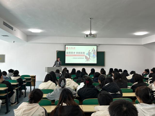 为深化产教融合、搭建校企协同育人平台,10月27日东莞证券大连营业部领导团队莅临经济学院,为2022级金融学专业学生带来一场兼具知识普及与职业指引的投融资教育宣讲会。金融专业系主任项逸皓主持会议,东莞证券大连营业部人事总监赵秋禹、金融学专业教师代表、2022级金融学全体学生参会。
