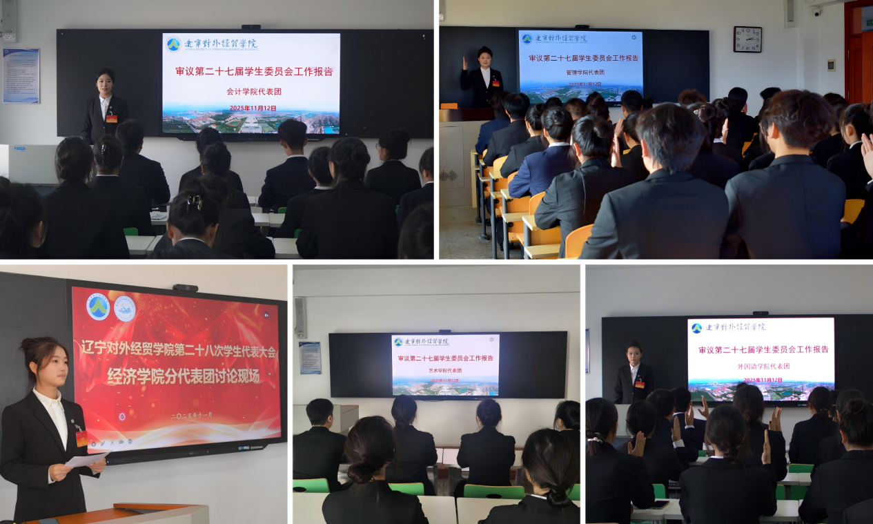 大会审议通过了《辽宁对外经贸学院第二十八次学生代表大会选举办法》(草案)和总监票人、监票人、计票人名单。与会代表以无记名投票方式选举产生了辽宁对外经贸学院第二十八次学生代表大会常任代表委员会和第二十八届学生会主席团。王建辉、王浩林、孔琳瑄、田梧桐、时孝树、刘亭硕、汪灵、余陈佳、肖林镁、杨蕊暄、郭欣瑶、徐艳培12名同学当选第二十八次学生代表大会常任代表委员会委员。王建辉、孔琳瑄、刘亭硕、郭欣瑶、徐艳培5名同学当选第二十八届学生会主席团成员。
