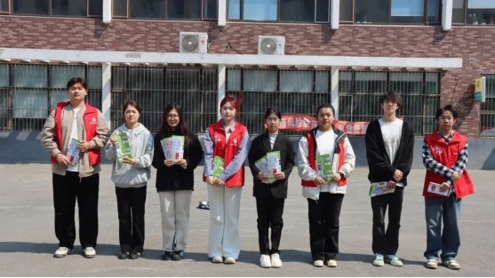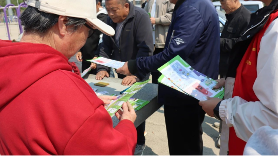 讲解结束后,我校志愿者们带着满满的知识储备,热情洋溢地来到广场,向社区居民们发放垃圾分类传单,耐心讲解分类要点。“爷爷奶奶,剩菜剩饭、果皮这些属于厨余垃圾,要放在绿色的垃圾桶里”“废旧电池、过期药品可是有害垃圾,可不能随便扔”,通俗易懂的话语,将复杂的分类知识简易地传递给附近居民,面对疑问,同学们也都一一细致解答,用青春力量传递着环保理念。