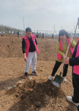 在植树过程中,学院领导身先士卒,带头挥锹铲土,为师生们树立了榜样。老师们也纷纷发挥模范作用,耐心指导同学们植树的技巧和树木生长的特征,让同学们在实践中明白,每一棵树苗的栽种都是为了地球增添一份生机,都是在为构建绿色家园贡献力量。同学们更是热情高涨,干劲十足。大家不怕脏、不怕累,全身心地投入到植树活动中。有的同学手上磨出了水泡,但依然坚持;有的同学汗水湿透了衣衫,但笑容始终洋溢在脸上。经过一下午的辛勤劳作,空旷的土地上栽满了新树苗,棵棵树苗错落有致,在微风中轻轻摇曳,展现出勃勃生机。