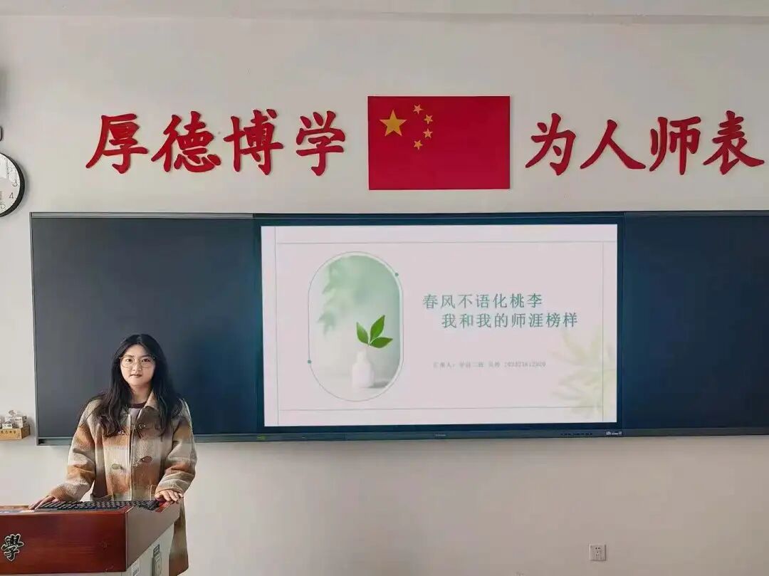 春风执笔,绘就桃李三千;青衿有志,不惧前路万里。“我和我的师涯榜样”课前五分钟分享活动不仅激励同学们树立职业理想,更凝聚了教育事业的共同追求,彰显了教师职业的使命感。愿每一位辽师学子皆能以春风为信,在躬耕教坛的征途上传承薪火,做不忘初心的守望者,当教育长河的破浪人。