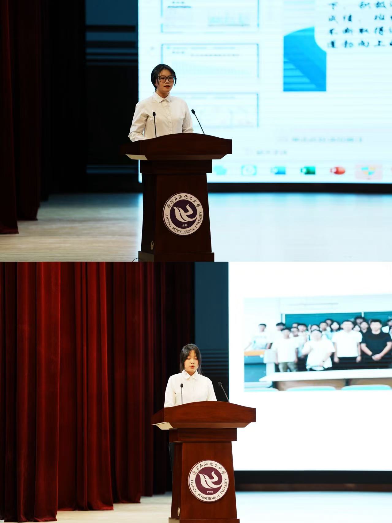 学情通报明现状,精准剖析促提升。大会在学情通报与分析中拉开序幕,全景展现了一年来学院学生在学风引领、科研竞赛等方面的扎实举措与丰硕成果。学生干部代表夏源、吴桐分别汇报2023级、2024级学生2024—2025学年学情通报与分析。全面、客观地向全院师生通报2024—2025学年整体学业成绩,从平均绩点、挂科率、大学英语四六级通过率等,进行横向与纵向对比分析,指出存在的突出问题,为后续学风建设指明方向。