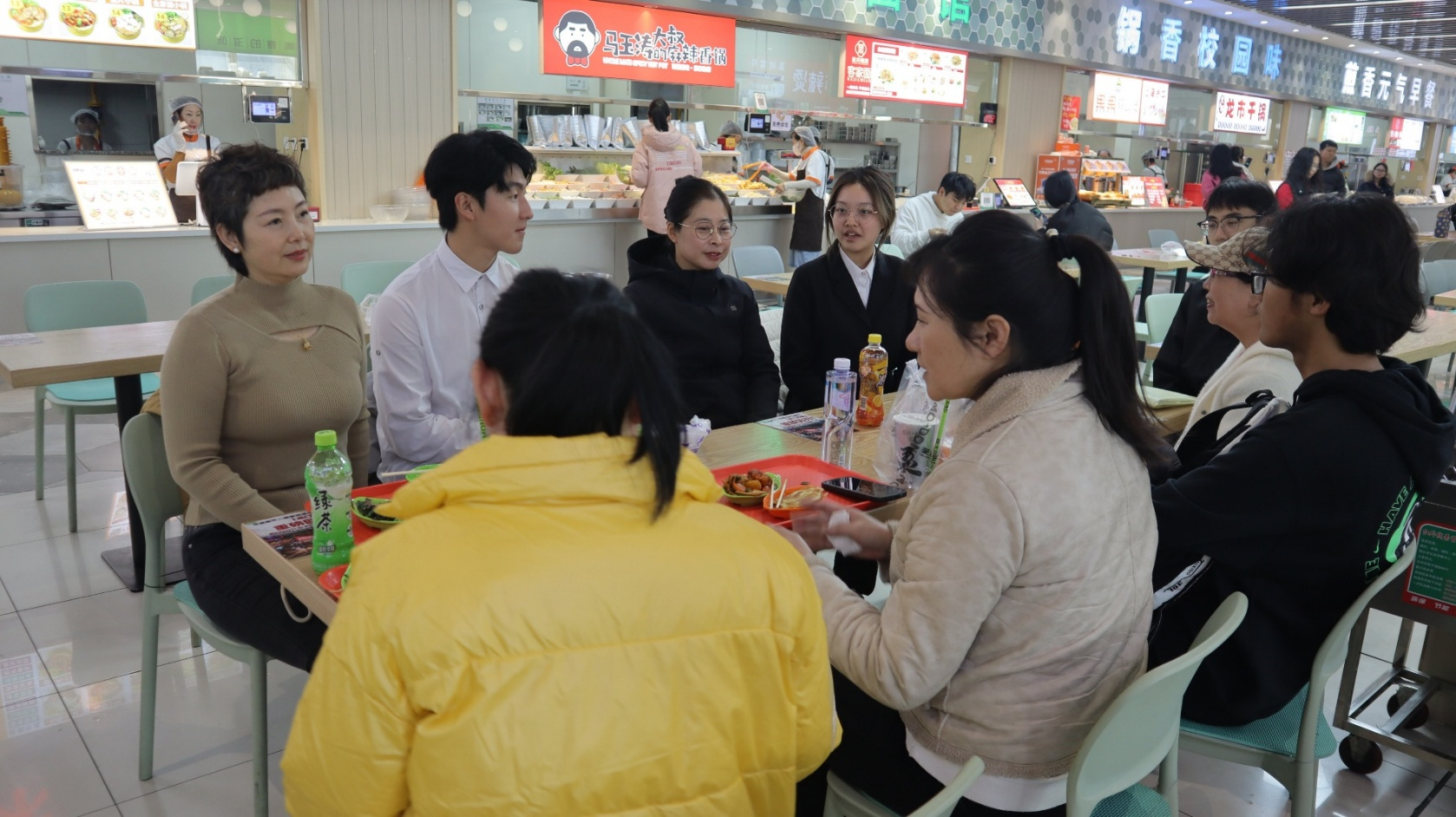 跳出传统交流的刻板形式,让餐桌成为“拉近距离、传递温暖”的载体。走访寝室结束后,姜帅、辅导员以及学生代表陪同家长们参观了龙源餐饮食堂并就餐,大家围坐在食堂餐桌亲切交谈。