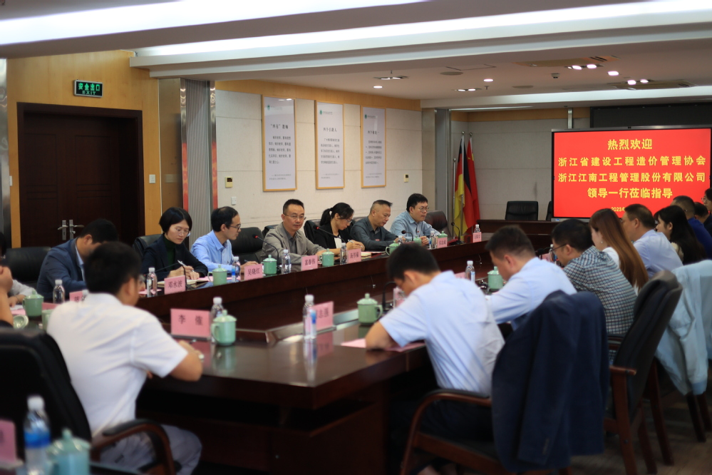 省造价协会常务副秘书长丁燕和江南公司造价事业部总经理韩仲凯就各自协会和公司的发展情况、业务内容、校企合作、平台搭建等方面作了汇报交流,并就如何加强课程开发建设、信息资源库建设、人才培养质量等方面提出了建议,希望与我校长期开展合作交流,共同为推动浙江省共同富裕示范区建设提供人才助力。