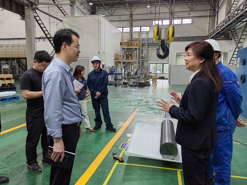 在参观同创(丽水)特种材料有限公司、丽水睿昇半导体科技有限公司过程中,王科一行首先深入车间,实地了解了企业的生产流程、设备配置以及技术应用情况。同创(丽水)副总经理甘英、丽水睿昇总经理李响各自详细介绍了公司的业务范畴、产品特点以及在智能制造领域的实践经验和未来发展规划等。