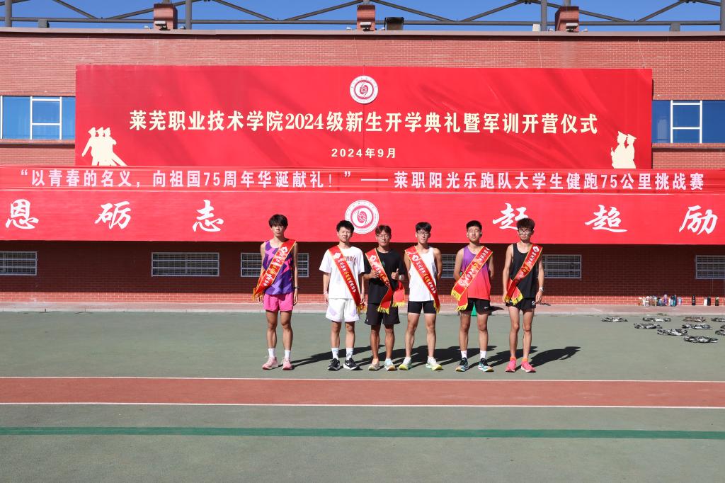 为庆祝新中国成立75周年,9月20日上午,学校组织举行阳光乐跑队大学生健跑75公里挑战赛,以青春的名义,向祖国75周年华诞献礼。来自药品食品系的张焕鑫等6名同学,在体育老师指导和协助下,开启了接续长跑75公里。经过7个多小时拼搏,6名同学顺利接续完成了本次挑战,展示了莱职学子坚韧不拔的毅力和践行“感恩·赶超”的精神风貌。