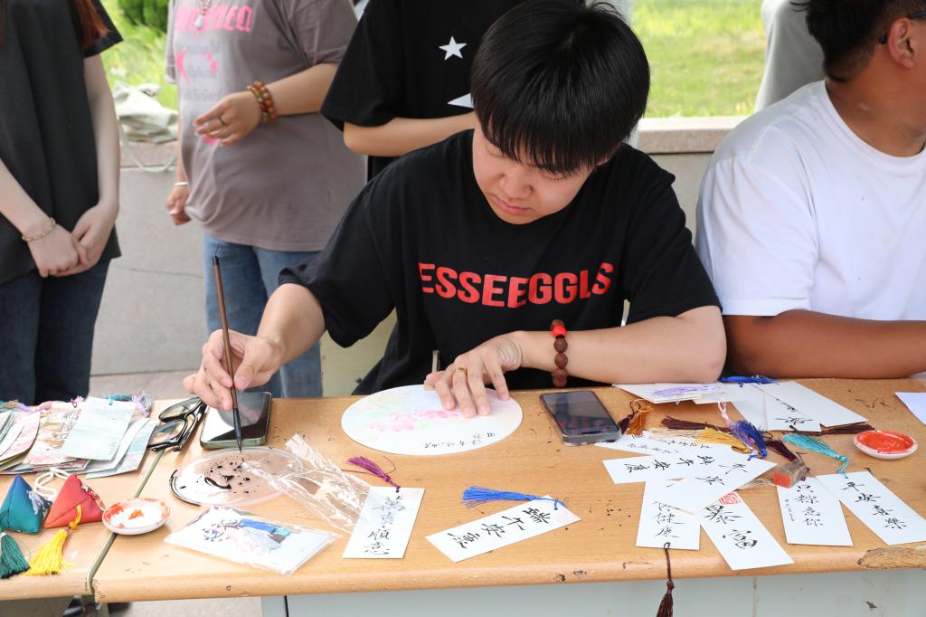 活动开始,汉服、舞狮社团展演、书画展示、中华经典诵读展演等这一系列的文化盛宴,营造了浓厚的节日氛围。团扇、漆扇、折扇等手工体验,“源源而莱”文创社团带领同学们充分体验传统技艺之美,感悟勇于实践的创造之美,促进了在校学生对非物质文化遗产的热爱和传承。
