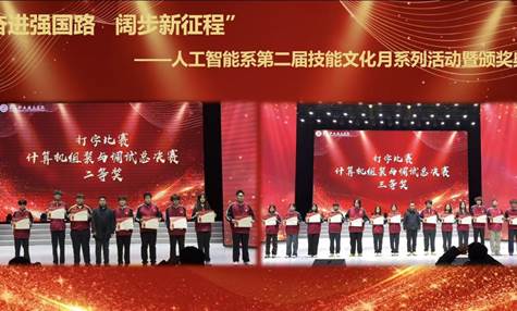 2025年1月2日,由人工智能系主办,软通动力数字产业学院承办,第二届技能文化月系列活动暨颁奖典礼在大学生活动中心隆重举行。本次技能文化月系列活动包含打字比赛、计算机组装与调试竞赛和PPT设计与演讲竞赛,旨在通过以赛促学、以赛促练,提升学生的综合素质、专业技能、创新能力和团队协作能力,同时激发学生的爱国情怀和奋斗精神,人工智能系领导班子均出席了本次活动。