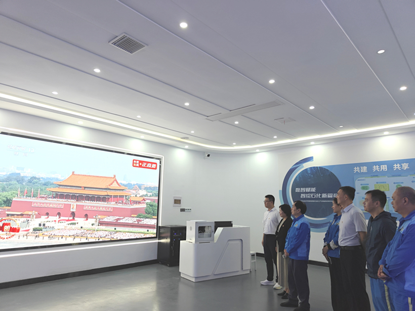 会前,戴建庭一行参观了“数智赋能”石油化工全产业链虚拟仿真实训基地,沉浸式体验学校实习实训环境,深入了解技能培训硬件设施与教学条件。