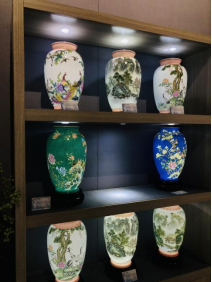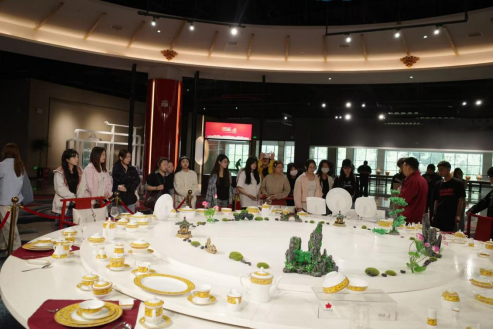 红叶国瓷馆——当代官窑,馆内展示中南海、大会堂、钓鱼台、亚太会议等国宴用瓷,通过参访红色陶瓷文化展览、对话非遗传承人及产业先锋,学生能深刻体会陶瓷艺术与国家发展、时代变革的关联。繁复的纹理、细腻的釉色,全是顶级艺术与手工的完美融合。