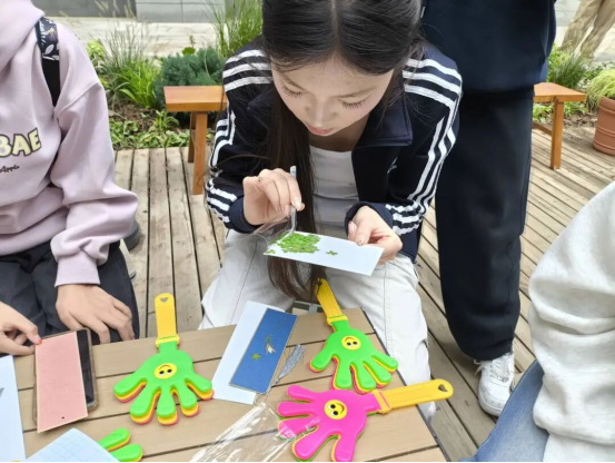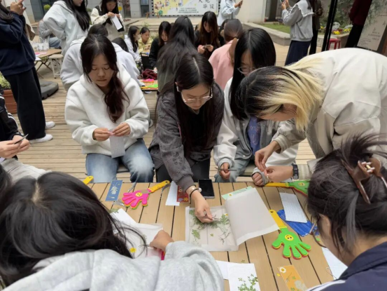 从理论到指尖,让创意即刻发生。企业导师杨霞以“色-形-光-动”四字诀展开快闪课堂,解析美陈设计的核心逻辑。设计理念分享后,奥雅的企业导师接过话筒,用一场沙龙分享的“美陈快闪课”将抽象概念转化为可操作的方法。通过花签制作植物花签,让同学们亲身体验到植物给我们带来的魅力。