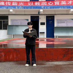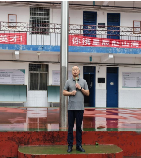 升旗仪式结束后,学生代表南艺麟走上主席台发言。他的发言饱含热情,振奋人心,赢得了在场师生的阵阵掌声。