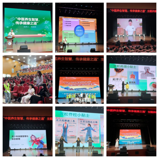 4月25日,学术交流中心座无虚席。邓成海、陈澜两位老师分别以“春季养生”与“青少年体重与体态管理”为主题,深入浅出讲解中医理论与实操技巧。邓成海老师结合广西气候特点,传授春季养肝、调息之法;陈澜老师现场示范八段锦与肩颈理疗,带领师生体验传统养生功法。互动环节中,师生踊跃提问,老师结合案例解答,现场反响热烈。