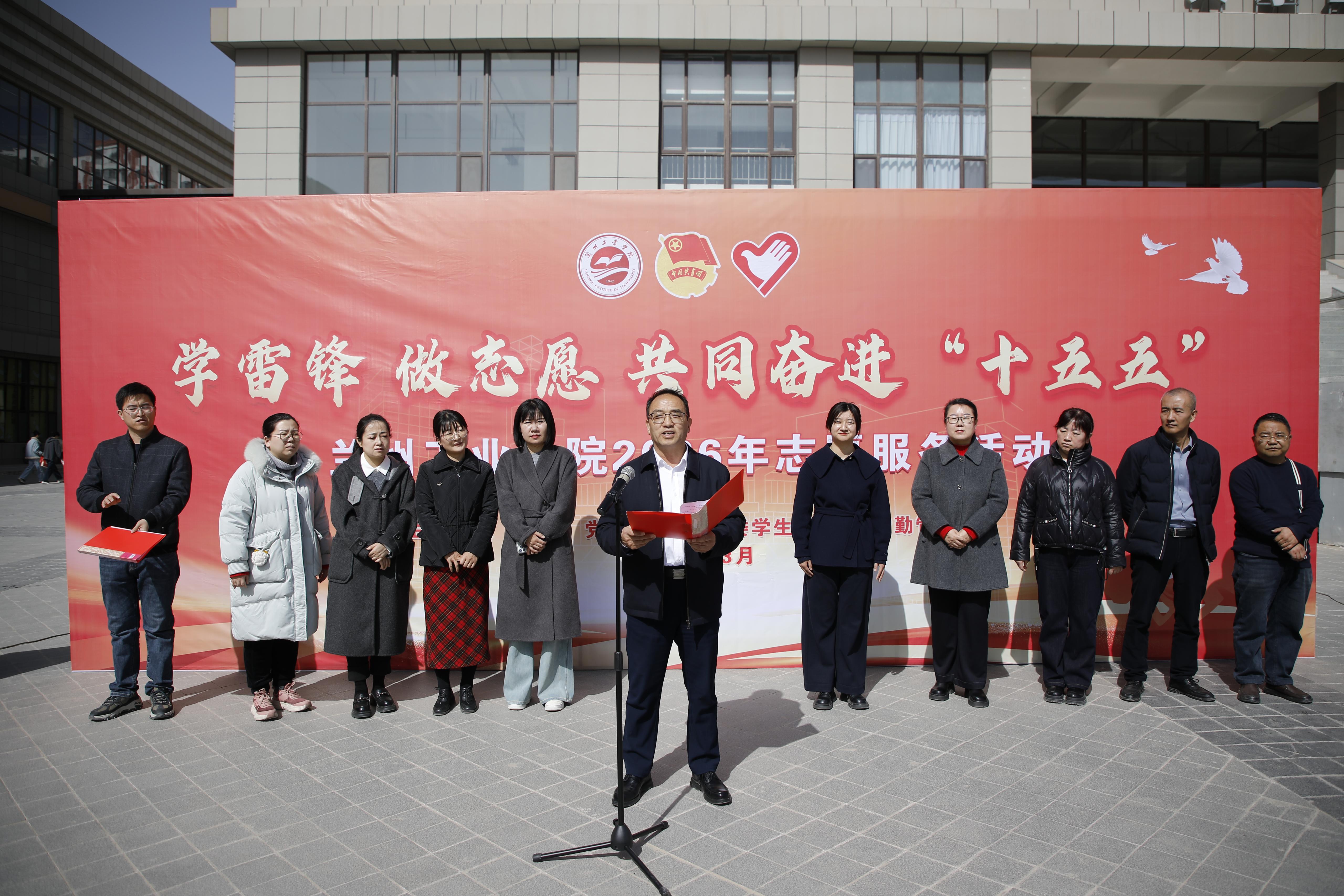 3月5日下午,学校2026年“学雷锋”志愿服务活动启动仪式在兰州新区校区大学生活动中心前广场举行。党委委员、副校长贾杰华出席仪式并讲话。