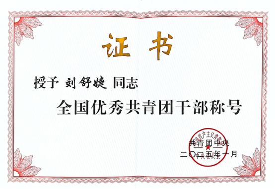 近日,共青团中央公布了《关于表彰全国五四红旗团委(团支部)、全国优秀共青团员、全国优秀共青团干部的决定》,我校教师刘舒婕荣获“全国优秀共青团干部”称号。