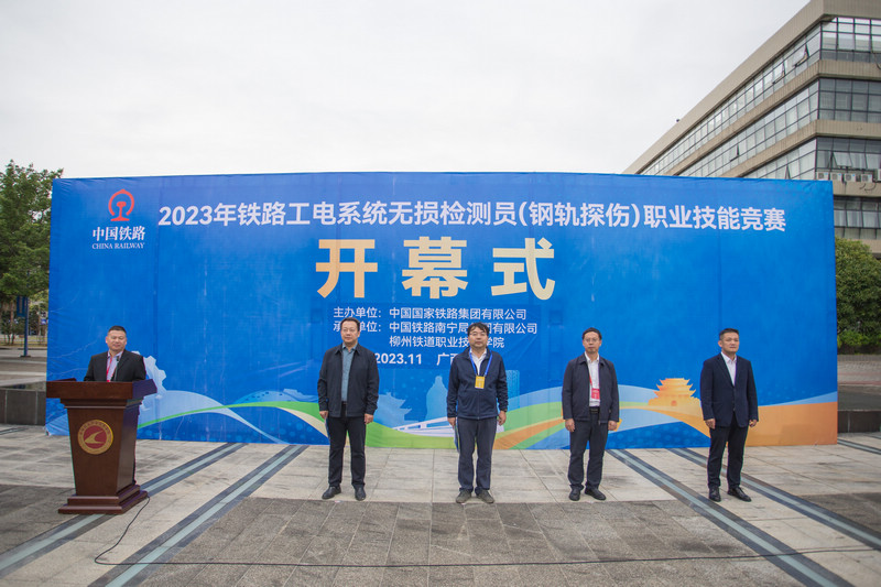 11月12日上午,由中国国家铁路集团有限公司主办,中国铁路南宁局集团有限公司和我校承办的2023年铁路工电系统无损检测员(钢轨探伤)职业技能竞赛决赛开幕式在我校举行。中国国家铁路集团有限公司工电部罗国伟处长,中国铁路南宁局集团有限公司副总经理赵必忠,柳州市教育局党组成员、副局长温剑,我校党委书记王汉强、副校长杨龙平出席开幕式。中国铁道科学研究院的专家,18个铁路局集团公司的领队、裁判、教练和参赛选手近180人以及学校相关职能部门、二级学院负责人参加开幕式。开幕式由副校长杨龙平主持。