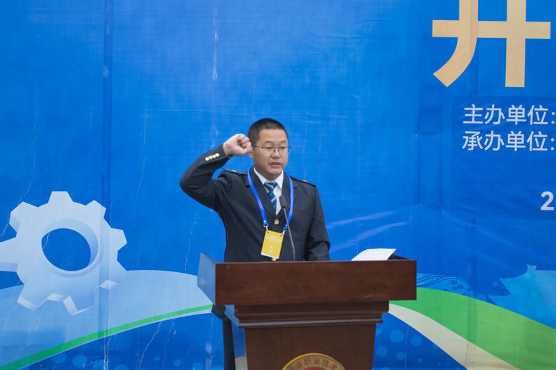 裁判员代表鲁维亮和参赛选手代表钟升分别作竞赛宣誓