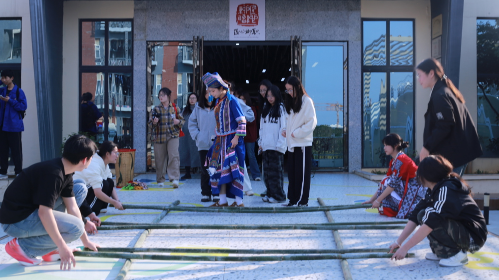师生体验竹竿舞