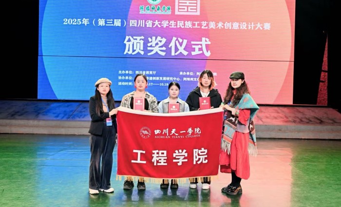 “比赛是打磨成长的过程”,这是张翻的教学信条。2025年备战四川省大学生民族工艺美术创意设计大赛时,动漫制作技术专业的林兰青让她印象深刻。这个从未碰过手工的女孩,因针法生疏、配色失衡屡屡碰壁,萌生退意。张翻带着她观摩传统纹样、查阅史料理解主题,再从基础针法手把手教学。无数个周末,知行楼105教室成了创作阵地,师徒俩经常忘记时间加班到深夜,被锁在教学楼里成了家常便饭。历经半年打磨,当作品斩获一等奖,内向的女孩热泪盈眶:“是张老师让我知道,努力那么久一切都值得。”