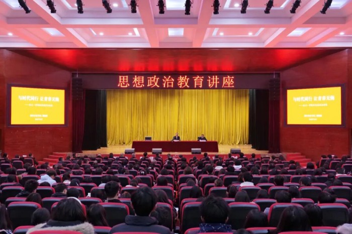 绵竹市委办、市教体局相关负责人,学校中层干部、思政课教师、辅导员以及近800名师生代表参加。
