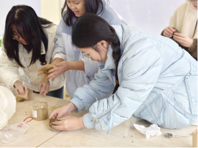 实操环节中,同学们热情高涨,按照步骤有条不紊地操作。大家手持模具,将混合均匀的香泥小心填入,按压平整,再轻轻脱模。生肖、莲花、祥云等造型各异的香牌雏形在指尖诞生。不少同学还发挥创意,在香泥中加入干花点缀,让香牌兼具香气与美感。等待香牌阴干的间隙,同学们相互展示作品,交流制作心得,现场洋溢着欢声笑语。