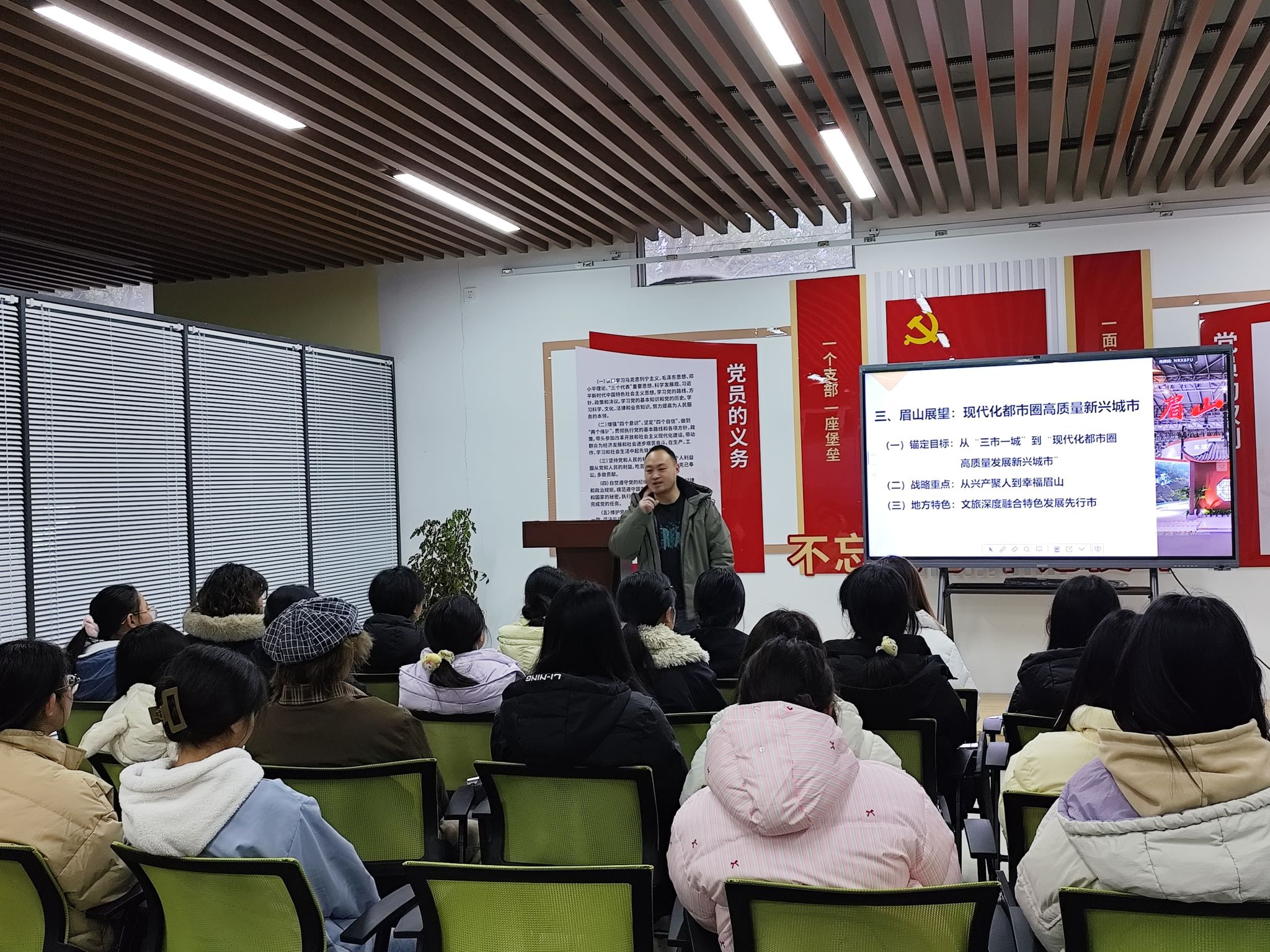 作为进驻学生社区的辅导员,周健宇深入学生中间,结合学生社区贴近学生、服务成长的特点,聚焦习近平总书记莅眉视察时关注的粮食安全、文化传承、民生保障等重点领域展开宣讲。他以“从试验田到丰收田”的生动变化为例,引导同学们直观感受“把粮食生产抓紧抓牢”嘱托在实践中的丰硕成果;结合学生参与过的“三苏文化进校园”活动,阐释文化自信在青年一代身上的延续与弘扬;周健宇还分享了往届毕业生留眉就业、助力本地产业升级的鲜活事例,启发学生思考“专业所学”与“家乡所需”之间的深刻联系。