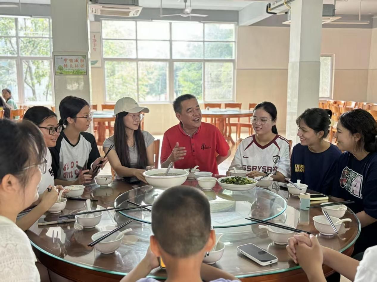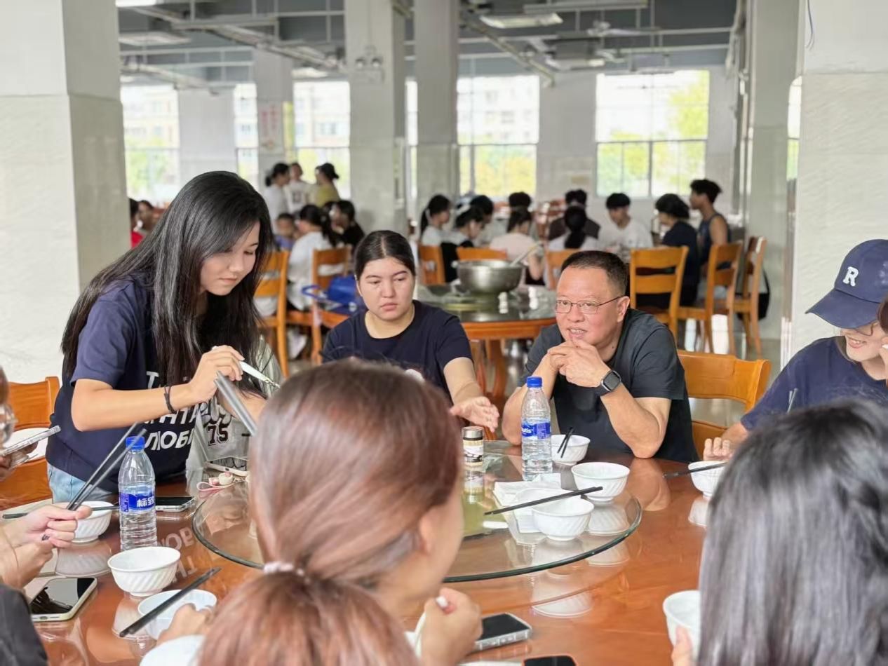 在欢声笑语的共享厨房里,校领导与同学们围坐在一起,亲手包饺子,聊家常、谈学业、问冷暖。卢伟耀书记、梁俊平校长与同学们“面对面”交流,“心贴心”沟通,关切询问大家入学以来的适应情况与未来规划。一句句暖心话语,一次次真挚问候,照亮了学子心中“家”的方向。