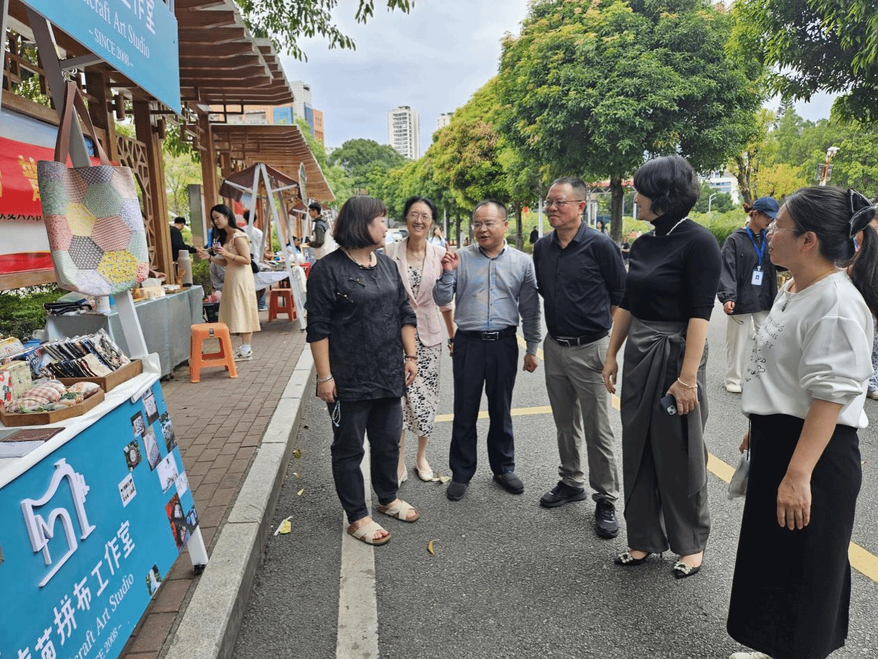 活动现场划分为三大核心区域,亮点纷呈。校内15个学生创业摊位各具特色,涵盖校本文创、毛体文创、拼豆挂件、手工钩织、纽扣饰品等原创手作,充分展现青年学子的巧思与创造力;即拍即得、闲置交换、体育用品、下午茶小食等多元业态,也彰显了闽大学子敏锐的市场意识与动手能力。同时,活动特邀晓苗拼布工坊、书梦美丽工坊、梨花季等3家本土文创企业参与,带来布艺潮玩、编制造物、非遗绒花和缠花等精美手工创意产品,促进了校园创意与地方非遗文化的有效对接与交流碰撞。许多摊位的产品备受青睐,很快销售一空。校声乐社的同学轮番献唱《小幸运》《追光者》等热门曲目,灵动歌声萦绕集市,营造出浓厚的艺术氛围,吸引众多师生驻足欣赏,为文创体验增添了更多青春活力。