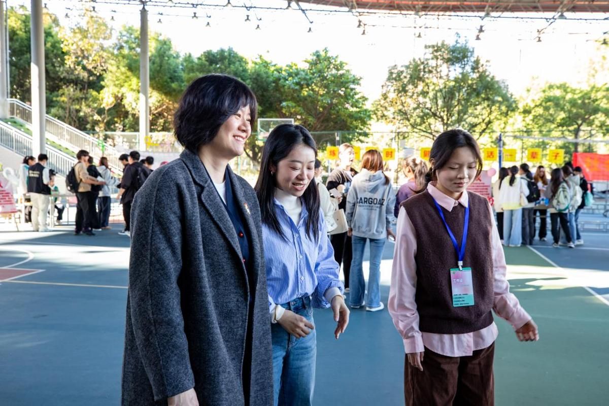12月1日世界艾滋病日,槟龙球场红丝带环绕,校青春健康同伴社主办的“携手抗艾,与爱同行”主题游园会在此开展。副校长连玲娜莅临现场,与400余名师生共同参与这场防艾宣传活动。