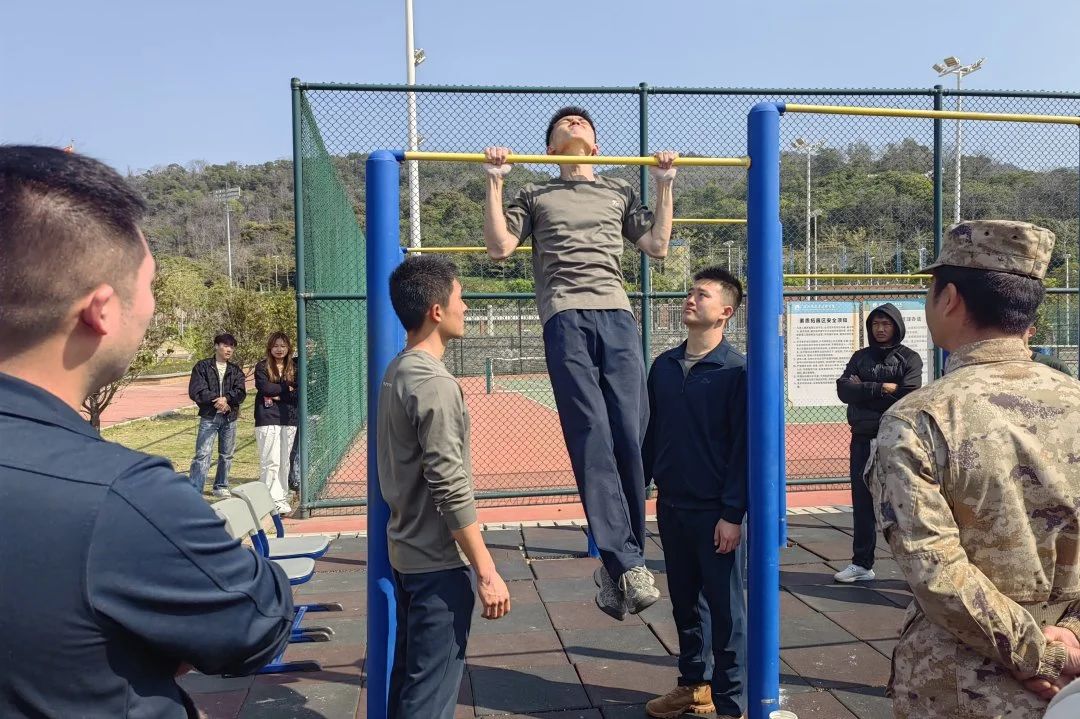 本次军事运动会,是学院首次将国防教育与体育运动有效结合的一次全校性体育盛会,同学们都很珍惜这样一次难得的机会,踊跃报名参加,包括70多名从部队退役回校复学的老兵。此次运动会项目有轻装三公里、手榴弹定点投掷、轻武器模拟射击、战术基础动作、引体向上、30x2蛇形跑、双杆臂屈伸、武装五公里等。