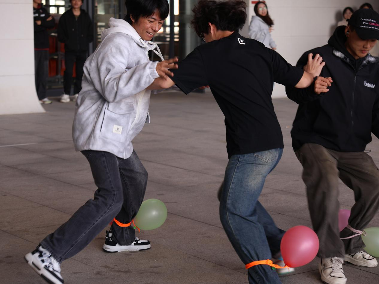 紧接着的“踩气球”游戏更是将现场气氛推向高潮。大家脚踝绑着气球,既要小心翼翼守护自己的气球不被踩破,又要伺机寻找机会踩爆他人的气球,在穿梭躲闪、嬉笑追逐间,彻底释放了学习的压力,尽情享受欢乐时光。