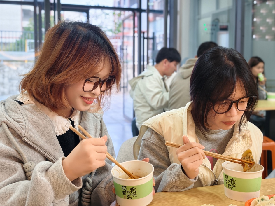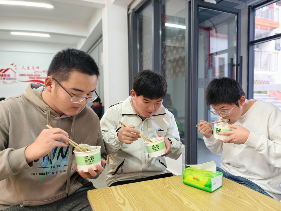 鲜香可口的饺子陆续出锅,师生围坐一桌,共享这份亲手制作的暖心餐食。