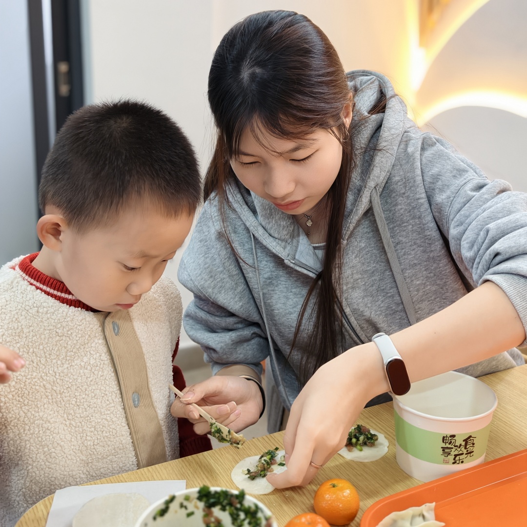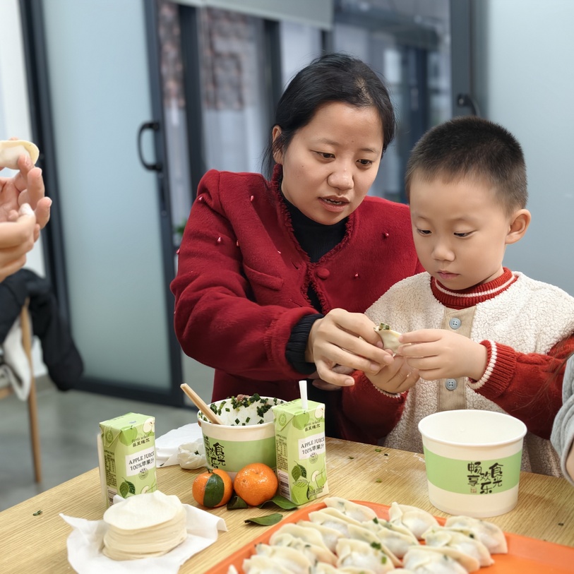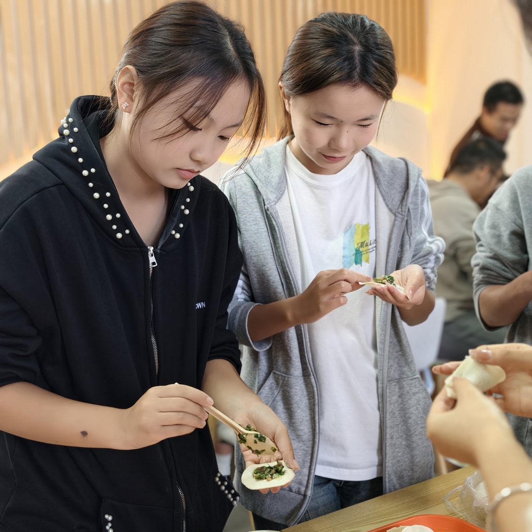活动现场暖意融融,师生分工协作、互帮互助,一双双巧手将对冬日的期许、对彼此的情谊,都包进了饱满的饺子里。形态各异的成品摆满桌面,欢声笑语中,劳动的快乐与传统文化的韵味悄然流淌。