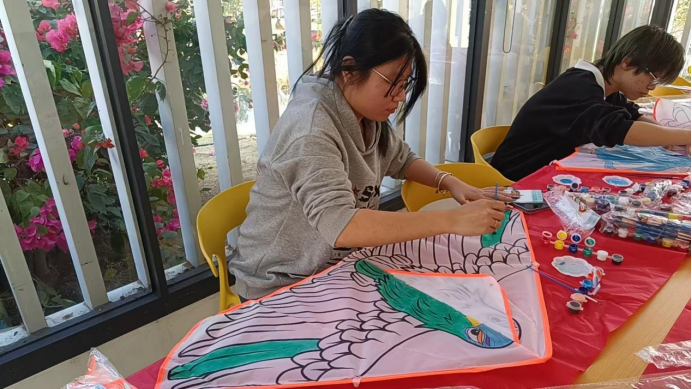 本次活动精准对接大学生心理需求,将风筝DIY创作与心理疏导巧妙融合,全程依托“一站式”学生社区的空间与服务优势展开。活动以“自主策划、自愿参与、互助协作”为原则,全程贯穿“全员育人、全程育人、全方位育人”理念。活动中,李林霞老师首先以“情绪与表达”为主题开展简短互动,引导学生将内心情绪、青春期许通过色彩与图案传递在风筝之上。创作过程中,同学们或独自构思,用明亮色彩勾勒阳光图景;或组队协作,在交流探讨中碰撞创意,将学业压力、生活困惑转化为笔下灵动的线条与鲜活的色块。引导学生将内心情绪、青春期烦恼通过色彩与图案传递在风筝之上。最后将对新一年的寄语写在风筝上,放飞梦想与期待。