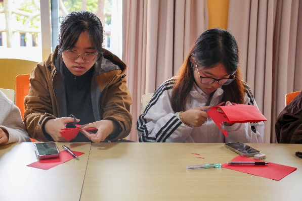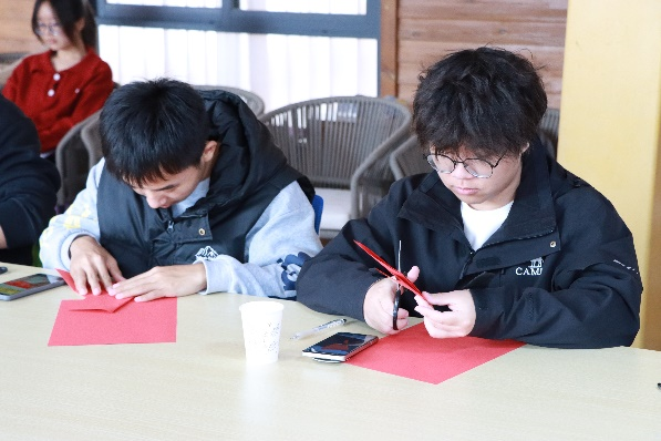 剪随心动,纸载初心。在剪纸创作环节,大家手持剪刀、红纸,精心勾勒党徽、五星、“青春向党”等元素,将对党的忠诚与热爱融入指尖创作,让红色初心随着红纸剪刻跃然纸上,以指尖匠心传递赤诚情怀。