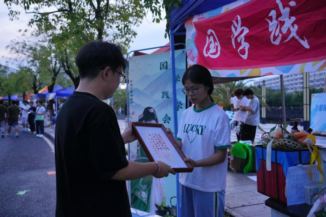 为确保招新活动顺利开展,校团委提前部署、周密安排,协同各组织社团制定了详细方案。活动前期,通过视频号、微信公众号等平台广泛发布招新预告,介绍各部门职能与特色,吸引新生提前关注。招新现场布置井然有序,70余个学生组织和社团的摊位各具特色、创意十足。学生社团管理服务中心统筹协调,引导大家有序参与;志愿者穿梭于人群中,热情提供指引与服务。各类社团和组织更是大显身手,带来了一场视听与体验的盛宴:摇滚吉他社现场弹唱,校艺术团华丽出片,国学践学会展示传统技艺,珏创科技创新协同中心亮出最新成果……更令人惊喜的是,本次活动还特别设置了互动环节,现场不仅有丰富多彩的体验活动,还有校长亲笔字画相赠,为招新增添了更多文化与惊喜元素。