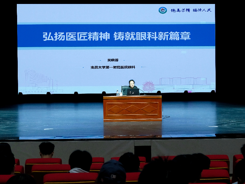 吴晓蓉以“弘扬医匠精神、铸就眼科新篇章”为主题,用朴实语言、真挚情感与生动事例,声情并茂地分享自身成长历程、奋斗故事及职业追梦感悟,同步科普近视防控知识,既彰显了劳模工匠执着专注、精益求精、一丝不苟、追求卓越的精神品质,也为在场师生送上实用健康指南,上了一堂鲜活的劳动教育思政课。