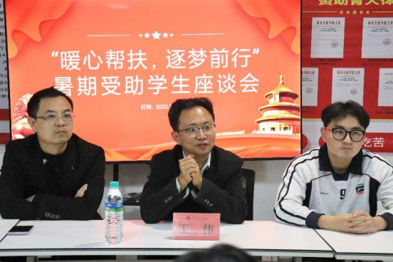 会上,王伟聚焦学生开学后的实际情况,细致询问大家在学业适应、生活保障等方面的状态与需求。他指出,要把学校的持续关怀转化为自立自强的行动,不仅要在学业上攻克难点、补齐短板,用扎实成绩证明成长,也要主动参与校园实践,在志愿服务、学科竞赛中锻炼能力,努力争当身边同学看得见、学得到的励志标兵。他强调,学校的帮扶从不局限于一次性支持,而是贯穿学生成长全程的“跟踪式关怀”,希望资助的意义不仅停留在物质层面,更能成为大家突破困境、追求卓越的精神动力。