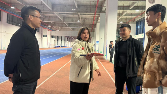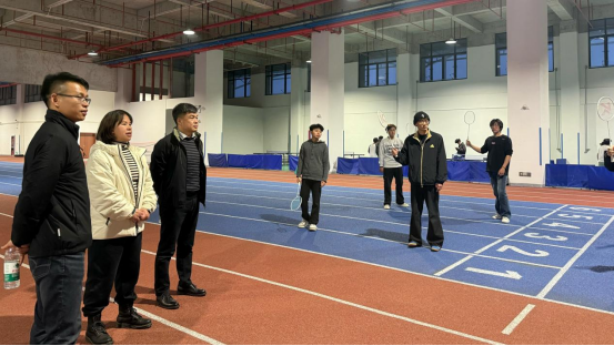 在一号综合馆,张丽花观摩了学院公选课教学,认真了解课堂教学组织与学生参与情况。课程实践环节中,她在教师指导下体验了嗒嗒球基本击球动作,与师生互动交流,现场气氛轻松活跃。课后,张丽花与授课教师交流,就激发学生运动兴趣、创新体育教学方式等方面提出建议。