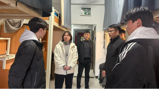 在学生宿舍,张丽花与同学们亲切交流,关心大家的学习生活情况、学习适应情况及未来规划,并叮嘱同学们珍惜大学时光,共同营造安全、整洁、和谐的宿舍环境。