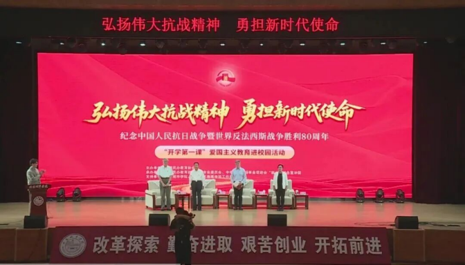 此次“开学第一课”不仅是一场高质量的思想政治教育,更是一场深刻的精神洗礼和青春宣誓。伟大抗战精神跨越时空,历久弥新,正以无穷的感召力激励着新时代青年坚定理想信念、厚植家国情怀、勇担复兴重任。我校将以此次活动为契机,持续推进“大思政课”建设走深走实,推动爱国主义教育常态化、长效化,引导广大学子在赓续红色血脉中增强志气、骨气与底气,把青春奋斗融入党和国家事业的伟大征程,在强国建设、民族复兴的火热实践中书写无愧于时代的青春篇章。