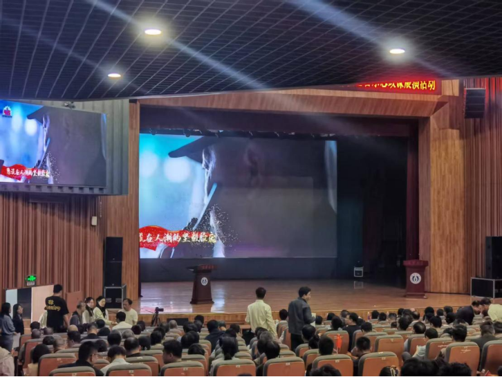3月27日下午15:00,南华大学红湘校区南华礼堂座无虚席,一场由南华大学党一站式学生服务中心大力协助举办的国家安全音乐思政课展演在此热烈展开。